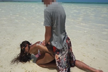 Молодая загорелая пара трахается на берегу океана