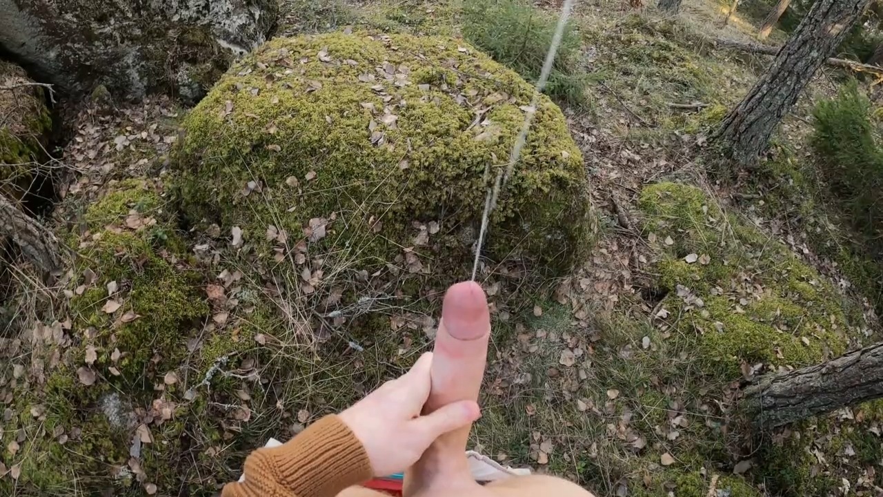Застал незнакомку за мастурбацией в лесу и сразу достал член